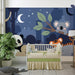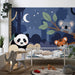 Plongez votre enfant dans un monde de magie avec ce papier peint pour enfants représentant une scène nocturne captivante. Dans un environnement serein, un panda adorable et un tigre curieux se faufilent à travers les feuillages, tandis qu'un koala paisible se perche sur une branche, observant le ciel étoilé.