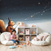Avec ses couleurs apaisantes et ses détails charmants, ce papier peint apporte une touche de magie et de curiosité dans la chambre de votre enfant. Le ciel, parsemé d'étoiles brillantes et de nuances allant du bleu profond au noir, crée une atmosphère douce et rassurante, parfaite pour des nuits paisibles.