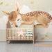 Entouré de feuilles délicates flottant doucement dans l'air, ce faon exquis évoque la tranquillité des forêts paisibles. Les détails minutieux, du velouté de son pelage aux nuances pastel, ajoutent une touche d'élégance à ce papier peint pour chambre d'enfant.