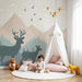 Transformez la chambre de votre enfant en un refuge tranquille avec ce papier peint pour enfants représentant une scène sereine de faune forestière. Au premier plan, un majestueux cerf et une douce biche se tiennent côte à côte, évoquant une harmonie avec la nature. En arrière-plan, les montagnes douces enveloppées de brume ajoutent une dimension magique à cet ensemble pictural.