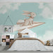 Papier peint chambre enfant | Lapin aventurier sur un avion en papier