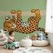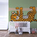 Le fond vert doux met en valeur les taches brillantes de l'animal, créant un contraste visuel attrayant qui invite à la découverte et à la curiosité. Le léopard, avec son expression malicieuse, donne vie à l'espace tout en apportant une ambiance apaisante grâce à ses couleurs naturelles.