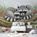 Papier peint chambre enfant | Ratons laveurs câlins sur une branche