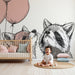Ajoutez une touche de magie et de joie à la chambre de votre enfant avec ce papier peint pour enfants représentant un renard et un raton laveur sous des ballons roses délicats. Ces adorables animaux, aux regards curieux, invitent à l'aventure et au rêve.