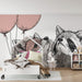 Leurs traits finement dessinés et les nuances douces de cette illustration créent une atmosphère accueillante et ludique. Les ballons flottants ajoutent une note festive, permettant à l'imagination de s'envoler. Ce décor est idéal pour éveiller la curiosité et la créativité de votre petit.