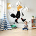 Les éléments délicats comme les petites plantes et les gouttes d'eau accentuent l'animation de la scène, créant une atmosphère dynamique et vivante. Ce design moderne et minimaliste s'intègre parfaitement dans une chambre d'enfant, stimulant l'imagination et la créativité.