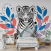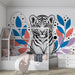 Papier peint chambre enfant | Tigre adorable entouré de feuillage coloré