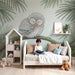 Entouré d'une végétation luxuriante et de feuilles tropicales, ce décor évoque une atmosphère apaisante, parfaite pour les moments de repos et de lecture. Les nuances douces de vert et de beige créent un cadre harmonieux et enchanteur qui se marie parfaitement avec le mobilier d'enfant.