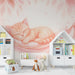 Apportez une touche de sérénité et de douceur à votre espace avec notre papier peint chat endormi. Ce design met en scène un charmant chaton paisiblement endormi dans un hamac, entouré de feuillage délicat dans des tons de rose pastel.