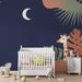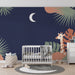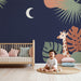 Papel de parede quarto bebê | Girafa sob a lua e folhagem tropical