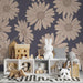 Papel de parede quarto bebê | Flores de margaridas em fundo violeta