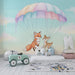 Papel de parede quarto bebê | Raposa e filhote de veado de paraquedas