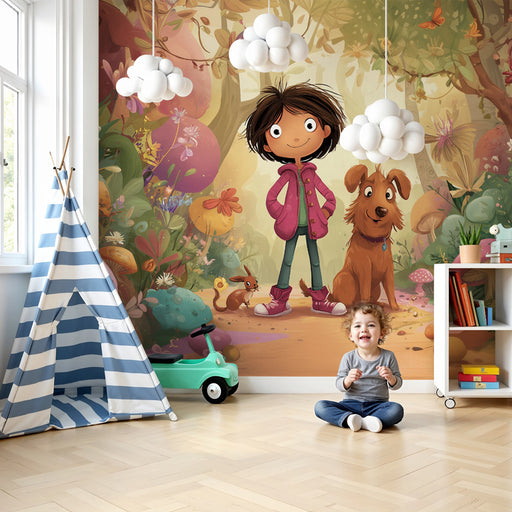 Mostrar todos os detalhesPapel de parede floresta encantada | Aventura com personagem e cão