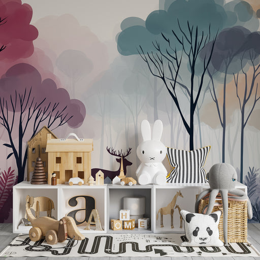 Mostrar todos os detalhesPapel de parede criança | Deixe-se levar pela suavidade de uma floresta colorida