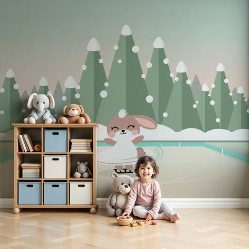 KidsWallTransforme o quarto do seu filho num verdadeiro cenário de inverno com este papel de parede para criança ilustrando um adorável coelho patinador. E...