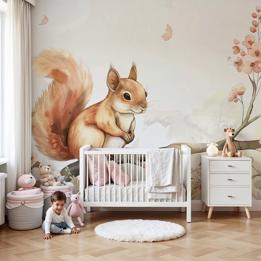 KidsWallOfereça ao seu quarto de bebê um toque de suavidade e poesia com o nosso papel de parede único. Este design encantador apresenta um esquilo delicad...