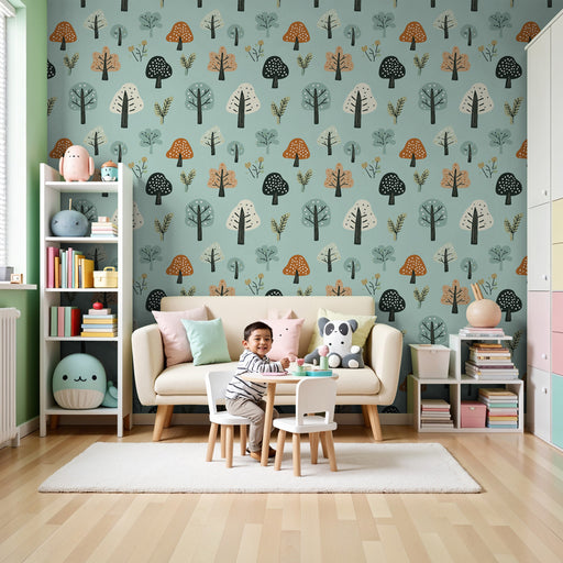Mostrar todos os detalhesPapel de parede criança com padrões | Floresta encantada com árvores variadas