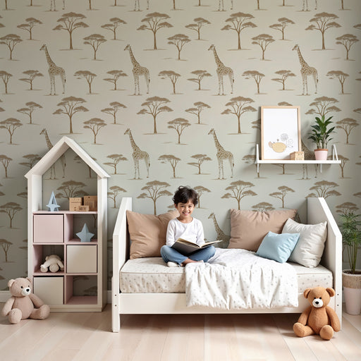 KidsWallReinvente o quarto do seu filho num verdadeiro safari com este papel de parede para quarto de criança que apresenta majestosas girafas orgulhosamen...