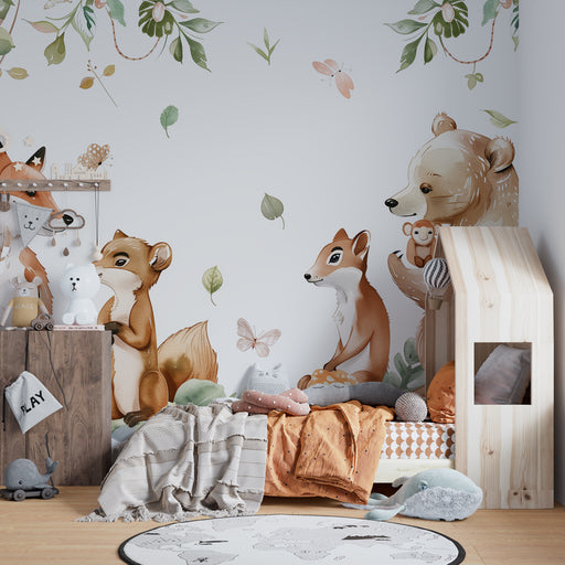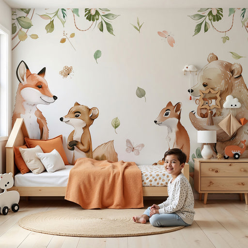 KidsWallMergulhe numa floresta encantada onde pequenos animais curiosos evoluem no coração de um cenário delicado e acolhedor. Este papel de parede criança...