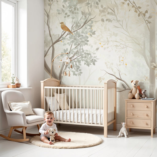 KidsWallCrie um universo terno e encantador com este papel de parede quarto bebê, onde a natureza e a suavidade se encontram em perfeita harmonia. Imagine ...