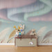 Transforme o quarto do teu bebé num verdadeiro sonho noturno com este papel de parede para bebé inspirado nas maravilhas do céu. As auroras boreais dançam suavemente sobre um campo de ervas delicadas, criando uma atmosfera calma e mágica. As tonalidades pastel de azul, rosa e verde misturam-se harmoniosamente, enquanto estrelas douradas brilham no céu.