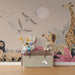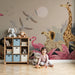 Papier peint chambre enfant | Animaux de la savane et palmiers roses