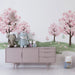Renovele o quarto do seu bebé num ninho fofo com este papel de parede para quarto de bebê ilustrando belas cerejeiras em flor. As árvores, adornadas com delicadas flores cor-de-rosa, criam um ambiente suave e calmante, ideal para o sono e devaneio.