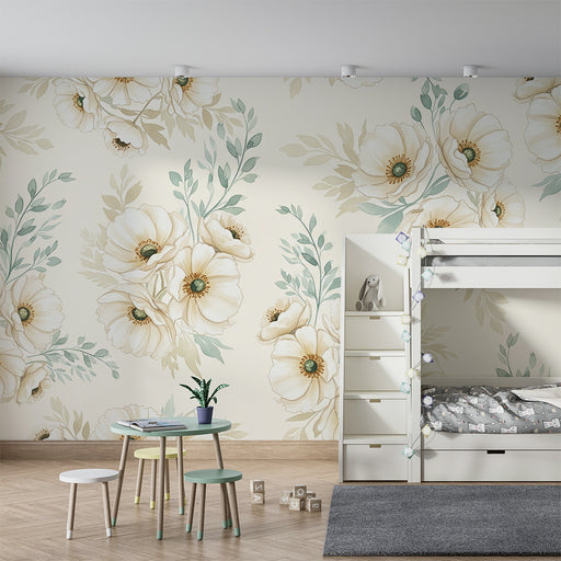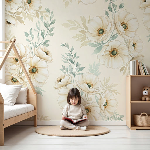 KidsWallRedecore o quarto do seu bebé com este papel de parede para bebê adornado com belas flores brancas e folhagem suave. As papoilas delicadas, com as ...