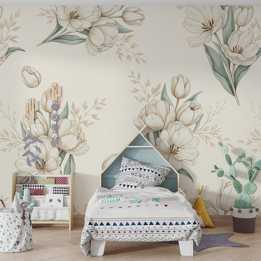 KidsWallRedecore o quarto do seu bebé com este papel de parede para bebê adornado com delicadas tulipas. As flores brancas, acompanhadas de folhas verdes e...