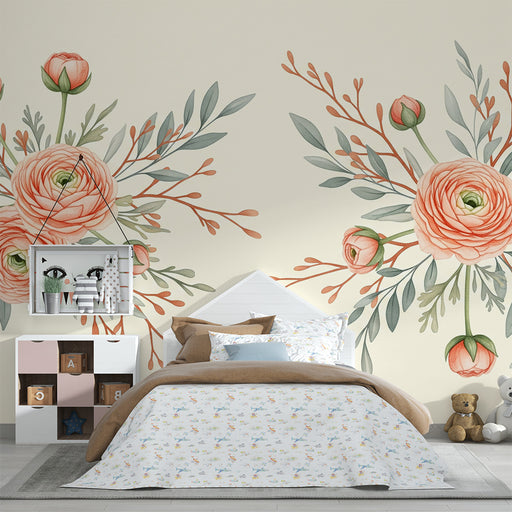 KidsWallRedecore o quarto do seu bebé com este papel de parede para bebé adornado com belas flores. As ranúnculos em tons suaves de pêssego e rosa, rodeado...