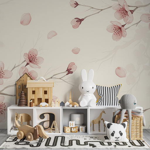 Mostrar todos os detalhesPapel de parede quarto bebê | Delicadas flores de cerejeira