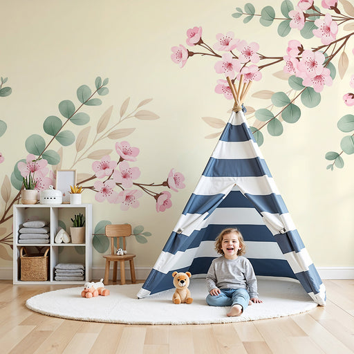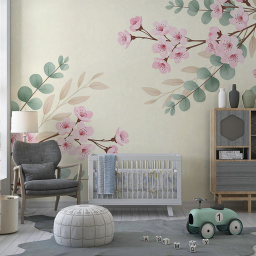 Mostrar todos os detalhesPapel de parede quarto bebê | Flores de cerejeira e eucalipto