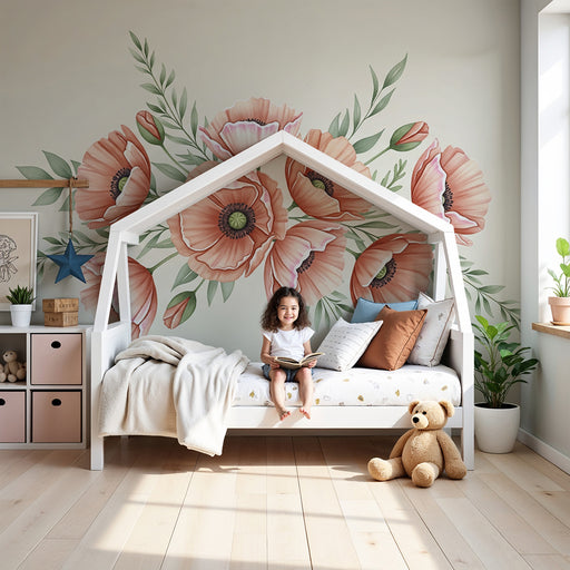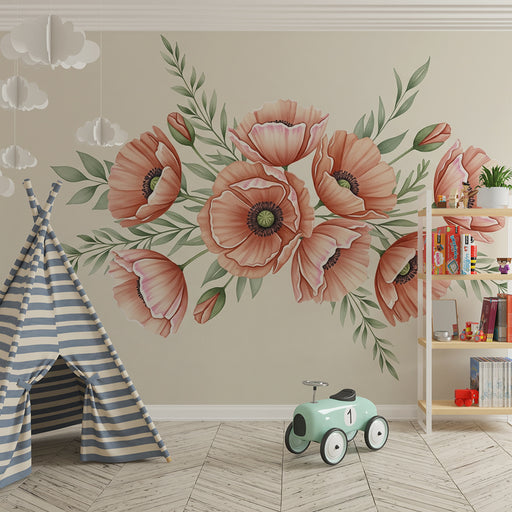 KidsWallRedecore o quarto do seu bebé com este papel de parede para bebê adornado com belas flores. As papoilas em tons suaves de rosa e laranja, acompanha...