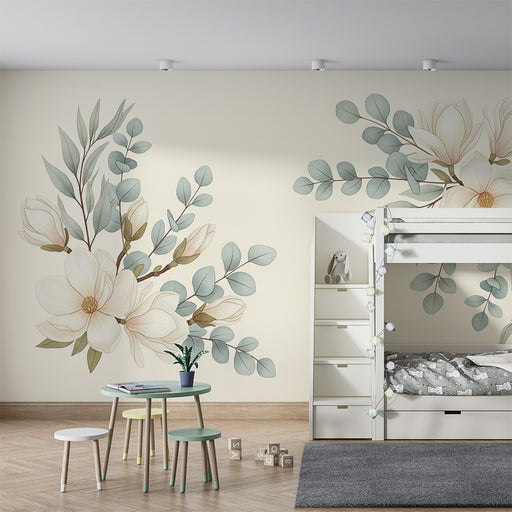KidsWallRenovele o quarto do seu bebé num casulo fofo com este papel de parede para bebé adornado com belas flores. As e as magnólias brancas misturam-se ...