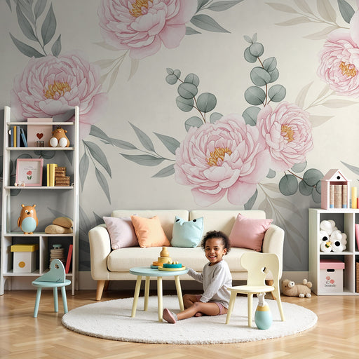 KidsWallRedecore o quarto do seu bebé com este papel de parede para bebé adornado com belas peónias cor-de-rosa. Cada flor, com as suas pétalas delicadas e...