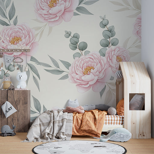 KidsWallRedecore o quarto do seu bebé com este papel de parede para bebé adornado com belas flores. As peonias cremosas desdobram-se graciosamente sobre um...