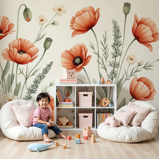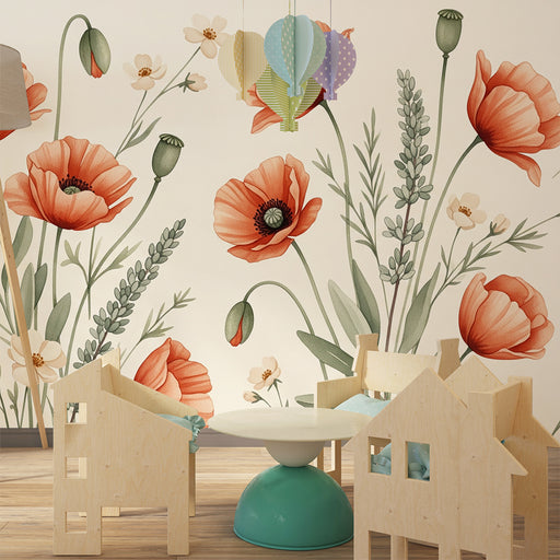 KidsWallTransforme o quarto do seu bebê num jardim encantado com este papel de parede para bebé adornado com belos papoilas e flores delicadas. As tonalida...
