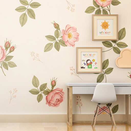 KidsWallRenovele o quarto do seu bebé num ninho fofo com este papel de parede para bebé adornado com belas flores. Os padrões florais em tons suaves de ros...