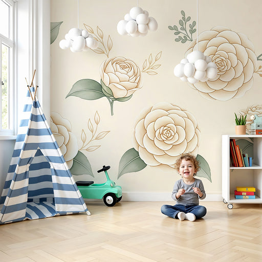 KidsWallRedecore o quarto do seu bebê com este papel de parede para bebê adornado com belas flores delicadas. Cada rosa, pintada em tons suaves de creme e ...