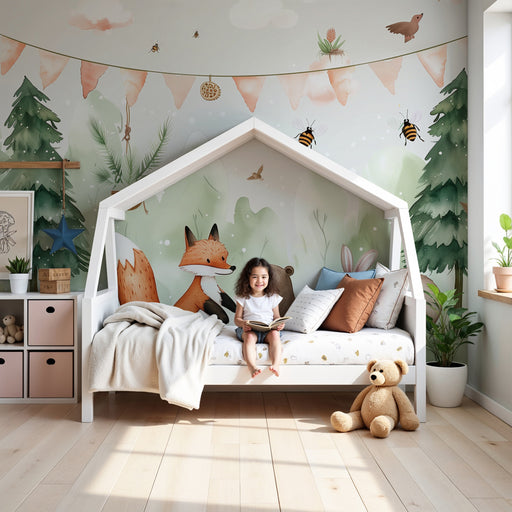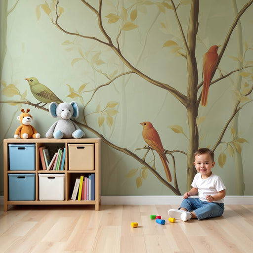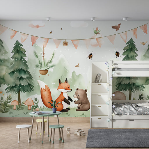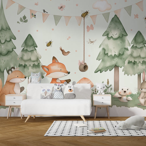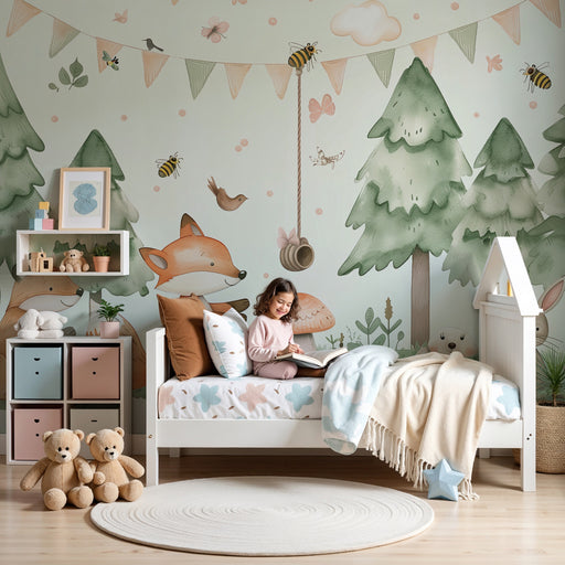 KidsWallPlonge num universo encantador onde a natureza ganha vida através de um papel de parede criança inspirado numa floresta tranquila. Nos ramos delica...