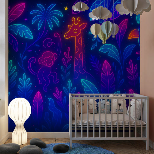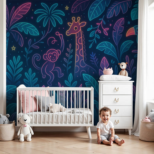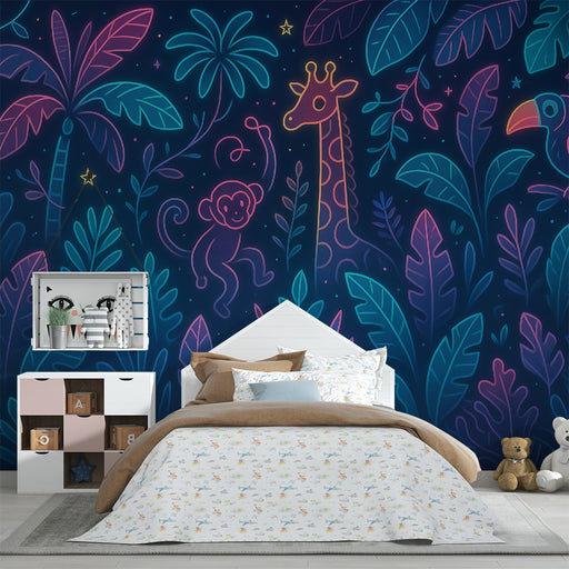 Adicione um toque tropical ao quarto do seu filho com este papel de parede para quarto de criança, apresentando tucanos coloridos descansando majestosamente entre folhagens delicadas. Com o seu fundo preto marcante, este design original realça as cores vibrantes dos pássaros, criando uma atmosfera lúdica e acolhedora.