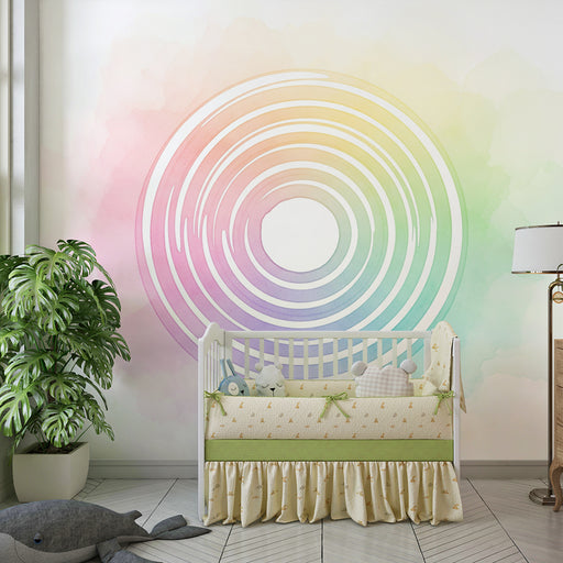 KidsWallTraga um toque de suavidade e serenidade ao quarto do seu bebé com este papel de parede para bebé com círculos coloridos em degradê pastel. As deli...