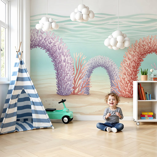 KidsWallMergulhe num fascinante universo marinho com este papel de parede para quarto de bebê que ilustra uma paisagem subaquática encantada. Arcos de cora...