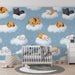 Este papel de parede adorável apresenta filhotes e gatinhos adormecidos nas nuvens, perfeito para criar um ambiente tranquilo e alegre. Ideal para decorar um quarto de criança ou uma creche, este padrão de animais adormecidos em um fundo azul suave inspira tranquilidade e sonho.