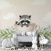 Papel de parede quarto bebê | Guaxinim fofo numa chávena