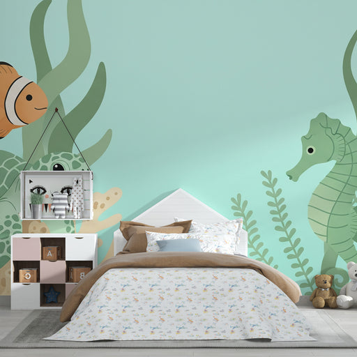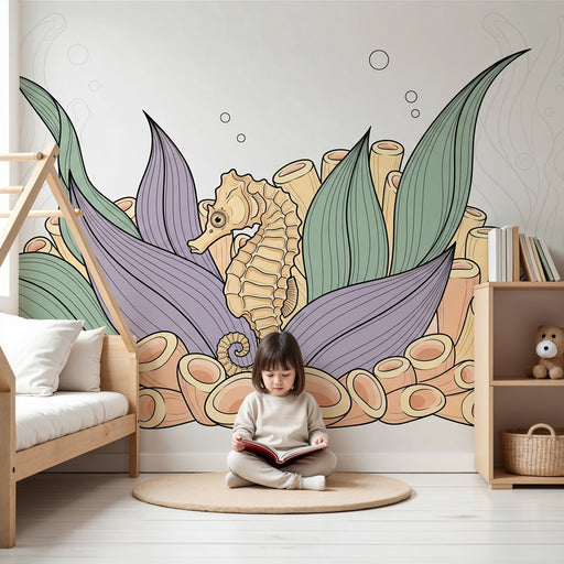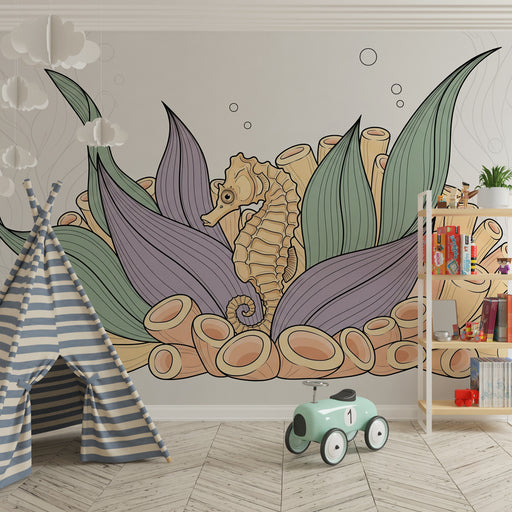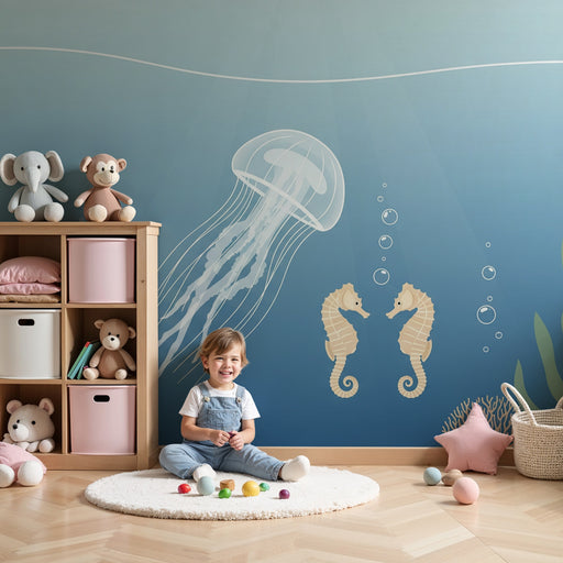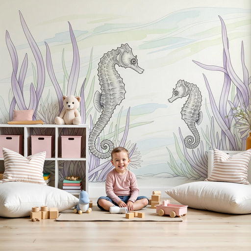 KidsWallTransforme o quarto do seu filho num oceano de serenidade com este papel de parede para crianças representando majestosos cavalos-marinhos num ambi...
