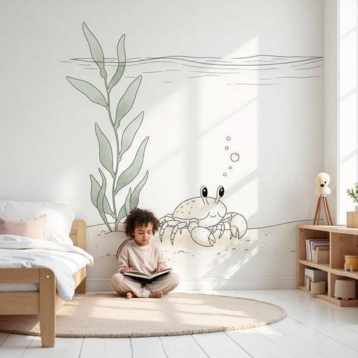 KidsWallMergulhe no universo calmante do oceano com este papel de parede para bebê representando um adorável caranguejo em seu habitat marinho. Rodeado por...