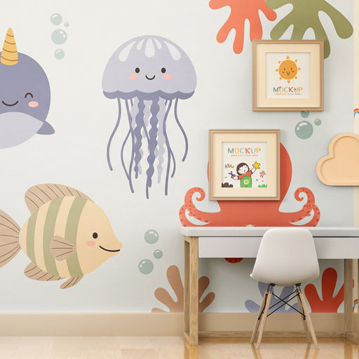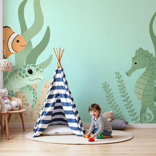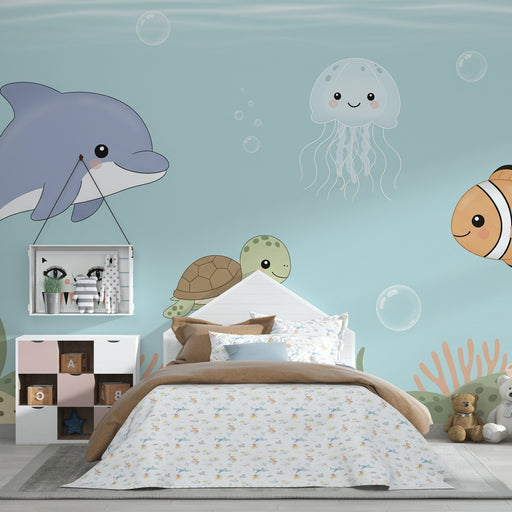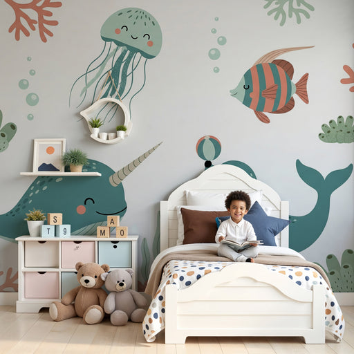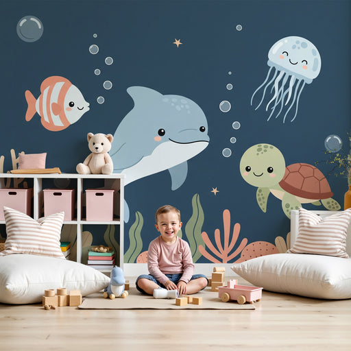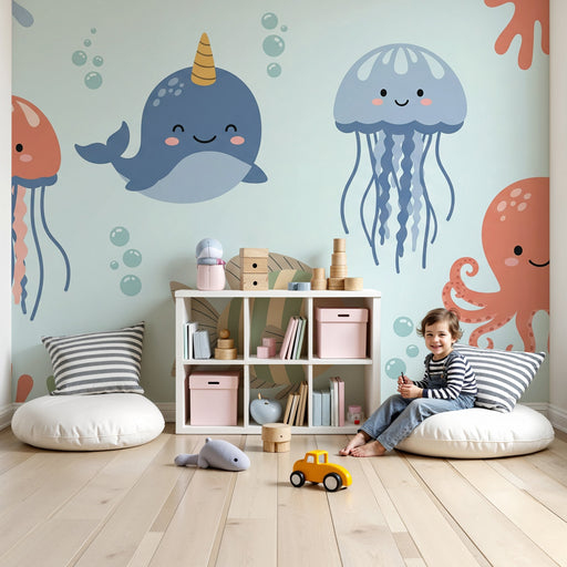 Mostrar todos os detalhesPapel de parede criança | Mergulhe no alegre universo marinho