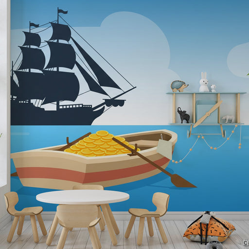 KidsWallEmbarque numa fascinante aventura marítima com este papel de parede para criança, que apresenta um majestoso navio pirata navegando em águas cintil...