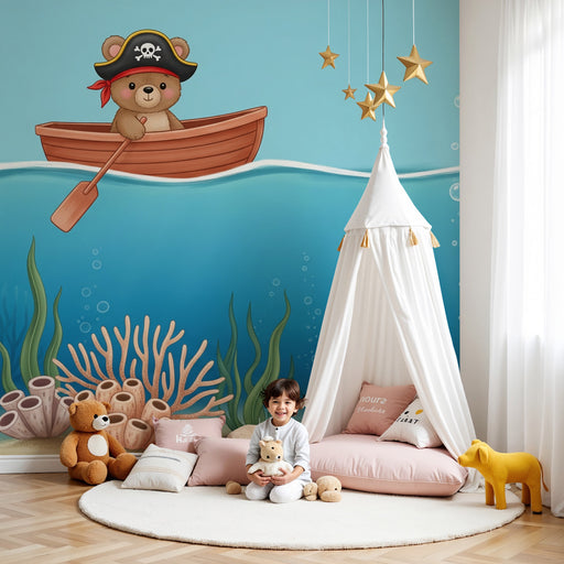 Mostrar todos os detalhesPapel de parede criança | Aventura de piratas com urso no mar